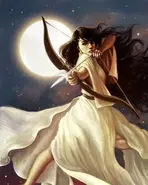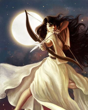 Artemis ist die Göttin der Jagd, des Mondes, der Jungfräulichkeit, der Tiere und die Beschützerin der Mädchen, hat aber auch die Kontrolle über Krankheiten. Zusammen mit Hestia und Athene ist sie eine der olympischen jungfräulichen Göttinnen. Sie ist die Tochter des Zeus und der Titanin Leto, und die Zwillingsschwester des Apollo. Sie umgibt sich mit einem Gefolge von jungfräulichen Jägerinnen, die sich "Die Jägerinnen der Artemis" nennen. Ihre Anführerin war Zoë Nachtschatten, die jedoch in "Der Fluch des Titanen" stirbt und deshalb von Thalia Grace abgelöst wird.