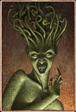 Kampe ist ein uraltes Monster aus den Tiefen des Tartarus und die Kerkermeistern des Titanenherschers Kronos. Sie besitzt zwei Kurzzschwerter mit starkem Gift. Dieses Gift kann einen Halbgott töten. Kampe wurde im Tartarus eingesetzt, um die Zyklopen und Hekatoncheiren dort zu bewachen und zu foltern.