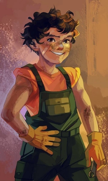 Chłopiec był synem greckiego boga rzemieślników Hefajstosa oraz nieznanej z imienia śmiertelniczki. W młodym wieku trafił do Obozu Herosów, prawdopodobnie zaprowadzony tam przez satyra. Został uznany przez swojego ojca i zamieszkał w domku numer 9, gdzie, z niewiadomych powodów, zamieszkał na cały rok.