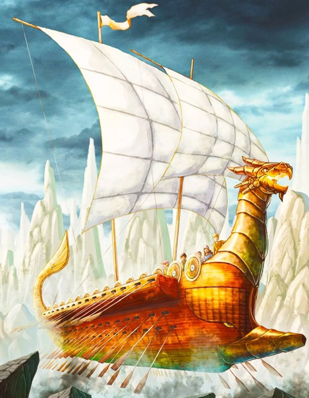 В распоряжении Арго II девяносто весёл — сорок пять с каждой стороны, расположенных в три яруса по пятнадцать в каждом. Но в отличие от древней триеры, корабль не нуждается в девяносто потных парнях чтобы грести! Они рассчитаны на питание от двигателя судна. Они также складные, поэтому они занимают очень мало места внутри корпуса. Когда судно в режиме полета, оно будто на воздушных крыльях. В бою они могут быть превращены в ощетинившиеся копья , которые препятствуют монстрам.