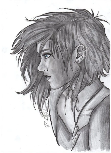 Девушка с ярко-голубыми глазами, черными короткими волосами, которые часто торчат ежиком и с веснушками на носу. Подводит глаза черным цветом. Сложена как стайер, легкая и крепкая. Одевается в стиле панк, ее черная одежда обвешана множеством цепочек.