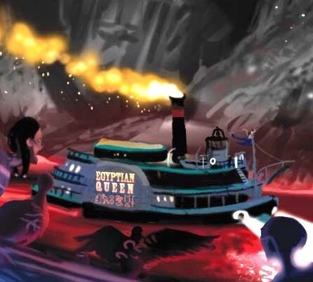 Картер призывает судно, чтобы отправиться в Дуат. Вместе с Зией, Сейди и Уолтом, он добирается на этом корабле до Дворца Осириса. Затем, вместе с Зией и Сетне отправляется обратно в мир живых, чтобы добраться до Мемфиса и найти книгу Тота. На реке на них нападает гигантский гиппопотам. Он пробивает обшивку корабля, и он временно не способен куда-либо плыть.