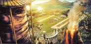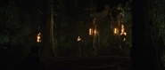 While Camp Half-Blood is not shown, Leo Valdez is said to have installed monitors on board the Argo II that have real time video of the camp. Later, after Leo had accidentally attacked Camp Jupiter and the seven of the prophecy are on board the Argo II, he wonders if it was a good idea to have installed the monitors. Leo wonders if they made the Greek demigods homesick after seeing Percy looking at one for a long time, gazing at the sunset over Half-Blood Hill. He also wonders if Camp Half-Blood seemed strange to the Roman demigods, as it was very different from Camp Jupiter.