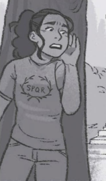 As Frank walks past his father’s temple, a probatio named Claudia exits and laughs at him. About a week later when the Mess Hall was only serving oatmeal, he tells the frustrated legion he ordered donuts from Bombilo's Coffee Shop.