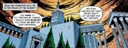 The Hall of the Gods is the place where the gods have their summer and winter solstice meetings. High above, the blue ceiling can be seen glittering with constellations. The Thrones of the gods stand in a U around the hearth or at least it did before the minor gods and Hades received thrones too (just like the Camp Half-Blood cabins before the children of minor gods and Hades were claimed and got cabins), starting with Zeus and Poseidon's thrones as they are the most powerful Greek gods. Hades does not have a throne on Olympus due to the fact that his throne resides in the Underworld, but when he comes to Olympus, there is a guest throne that he occupies (although he may have a throne now). From Zeus and Poseidon's thrones the goddesses sit on the left side of the hearth and the other gods sit on the right side. In one corner, a house-size globe of water hovers in the air and inside it is the Ophiotaurus, a half-cow, half-serpent creature. Hestia's hearth is in the center of the Hall. In The Titan's Curse, Percy Jackson wonders how it doesn't blow up with all the powerful gods inside. Percy describes it as being the size of Madison Square Garden and making Grand Central Station look like a broom closet.