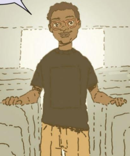 Tristan is an adolescent African American boy with a dark brown complexion and short Afro. He is tall with a somewhat athletic build. He often wears a gray hooded sweatshirt with a faded black inked flexed bicep on the back.